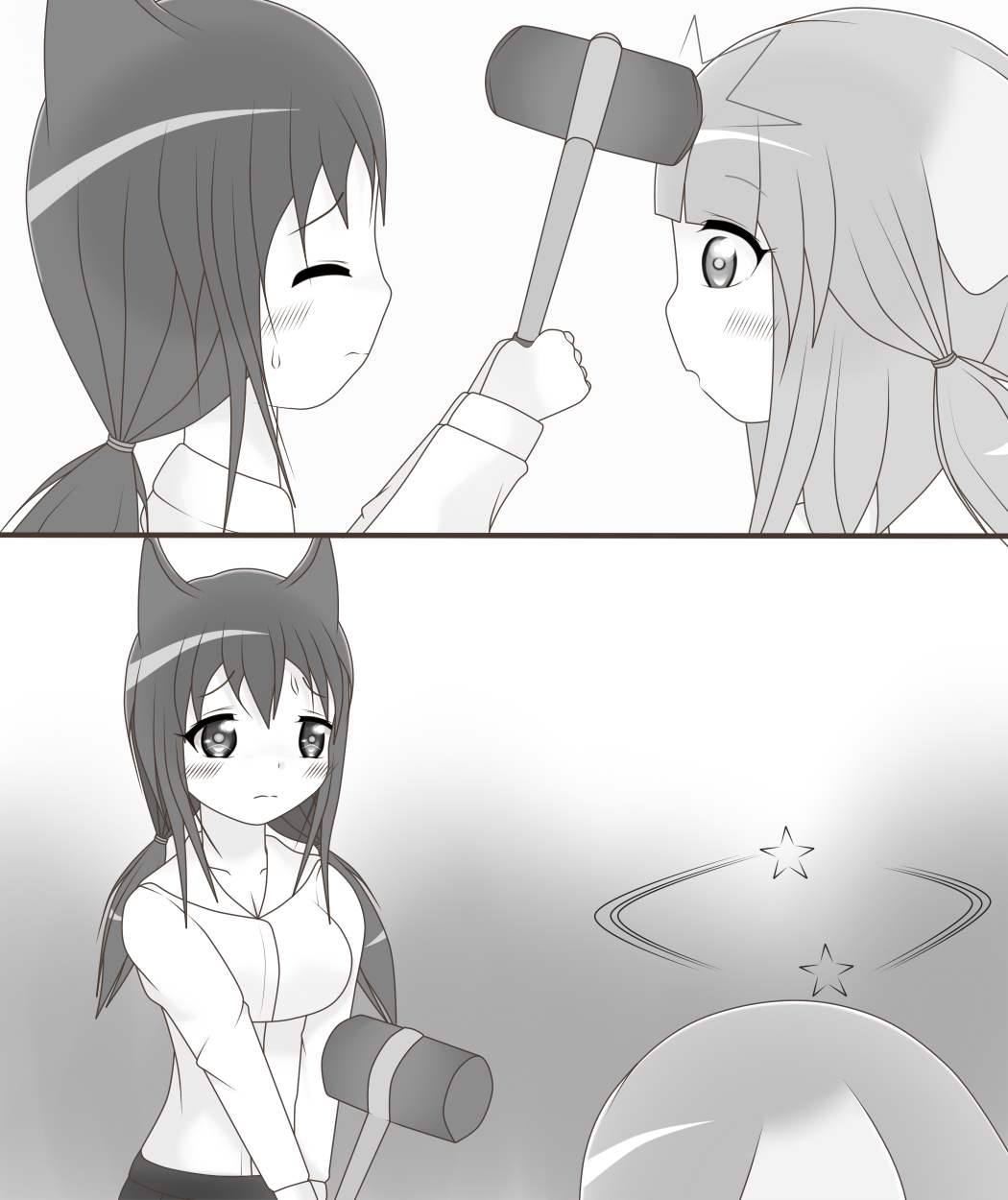 茶々に狂気を感じた木ノ葉は恐れ、思わず持っていたピコハンで彼女を叩いてしまった